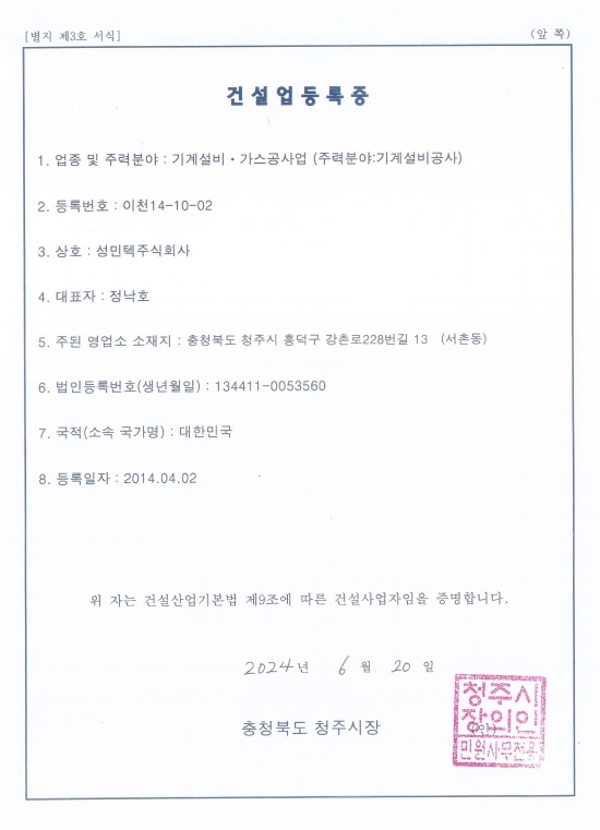기계설비업등록증