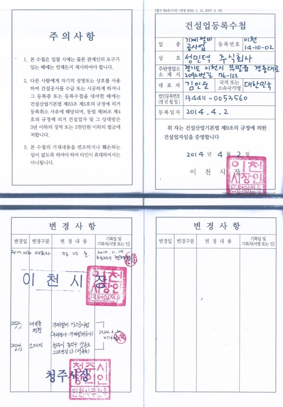 기계설비업등록수첩