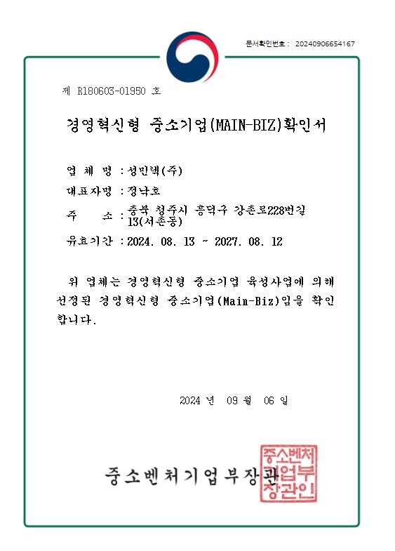MAIN-BIZ 확인서
